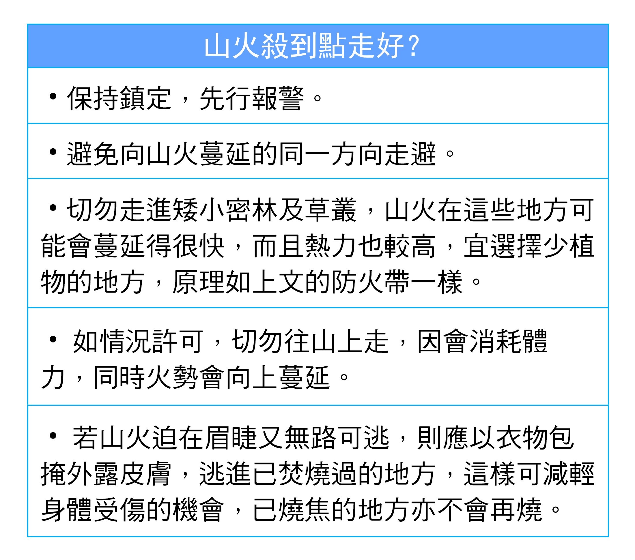 艷陽依然,但原來濕度、熱度靜悄悄減退,有時相對濕度更降至40度以下,不少日子已掛上紅色或黃色火災警告訊號,可幸今季未見有大型山火發生。活在城市的你,偶爾去郊野遠足,或許以為山火離你很遠,但原來上得山多終遇「火」,風火山林行山隊就曾目擊山火火舌朝天,火光紅紅的景況。