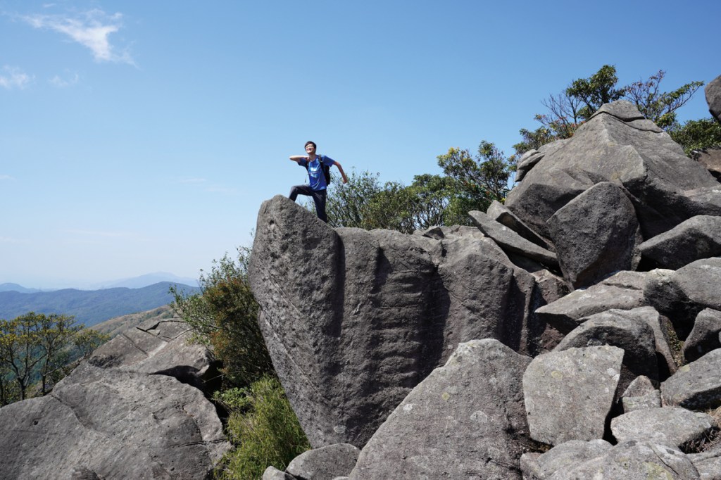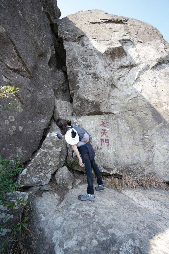 離開石天門之後我們就繼續下山,回到落山的主要山徑。此時我們就要找尋最後一個石林:斗壑石林。其實由石天門回到主徑,旁邊就是斗壑石林。但如果要找著名的石景勝利石,就得沿崎嶇小徑走一段,才會見到勝利石。我們初時也找不到勝利石,只是死不放棄,最後都成功了。所謂勝利石就似是豎立兩隻手指的勝利手勢,也就是今人所說的「兩盒Thx」。