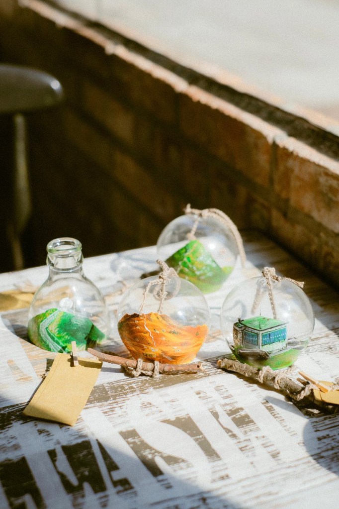 山系風鈴展原先選址在一個更為郊外的地方,但因疫情關係而取消。文西一度覺得心灰意冷,打算放棄舉辦展覽。朋友都覺得文西太執着,今年取消了,何不下年再辦?但文西覺得這個展覽在2020年舉行對她來說有獨特意義,不單單是紀錄2020年,亦是為了這個困難而傷悲的2020年祈福。作品展名為《願山》,就是向山許願,概念啟發自藏人轉山向神山敬拜的宗教儀式。文西相信山神的存在,而她向山神祈福的方向就是製作風鈴。每個風鈴都被掛上一張空白小紙條,應該是用來許願的吧?小小的紙條除了讓人覺得是讓人許願,亦令人聯想起價錢牌。「其實都有不少人問過賣幾錢,但我還未捨得賣,因為每個風鈴都花了很長時間、很多心思來創作。」這個展覽沒有入場費,也沒有販賣商品,原來文西從來都沒有想到「回本」這個問題。場地只有放了一個小小的紙盒上面寫上「文西餵食」,讓大家隨緣樂助。