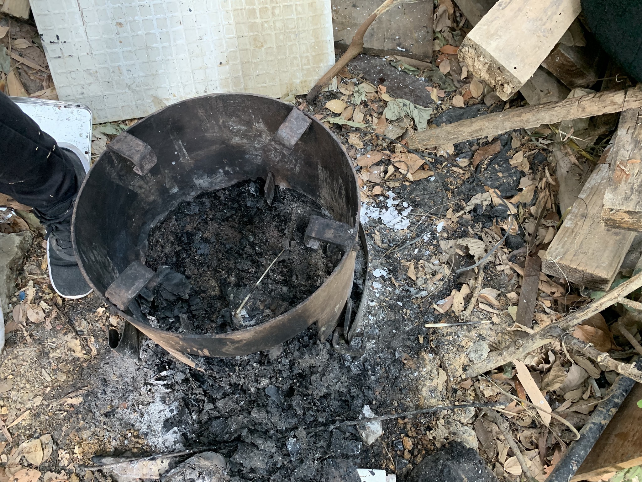 香港野豬關注組幹事Roni表示,他們在火爐附近找到箭豬刺。(相片由受訪者提供)