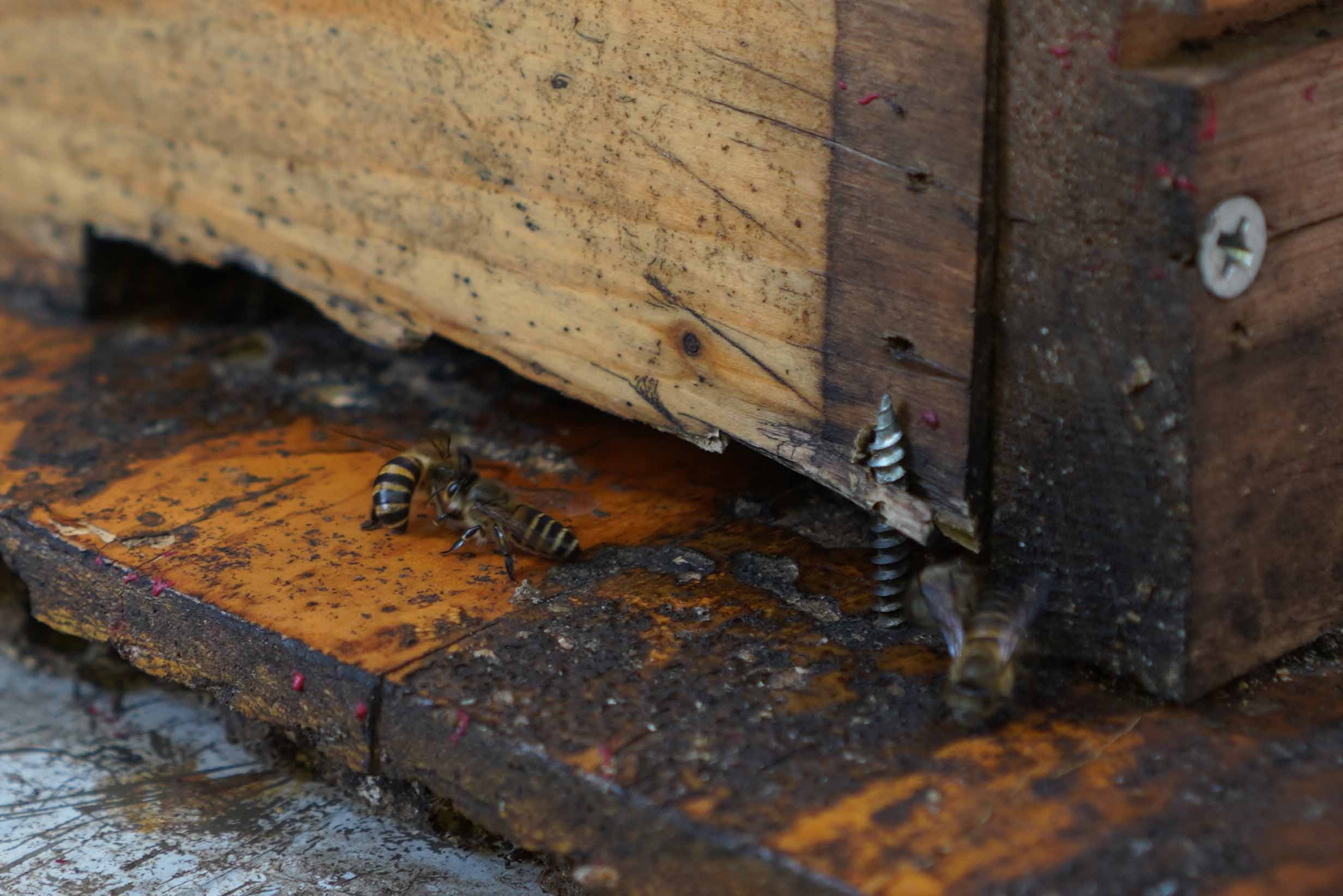 現場發現不少蜂箱,大量蜜蜂在蜂箱附近飛來飛去。