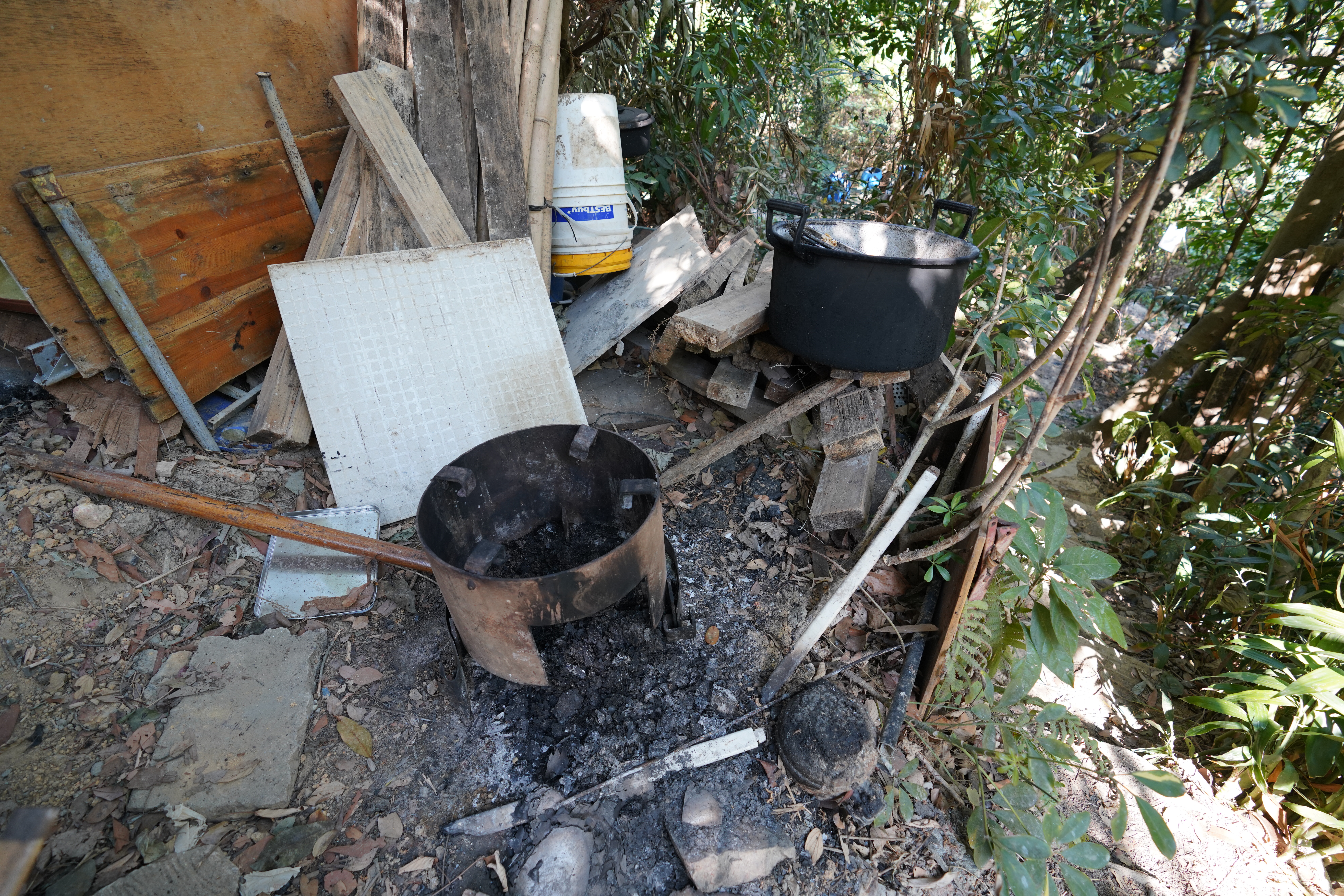 現場找到火爐及煮食用品,亦有生火煮食的痕跡。