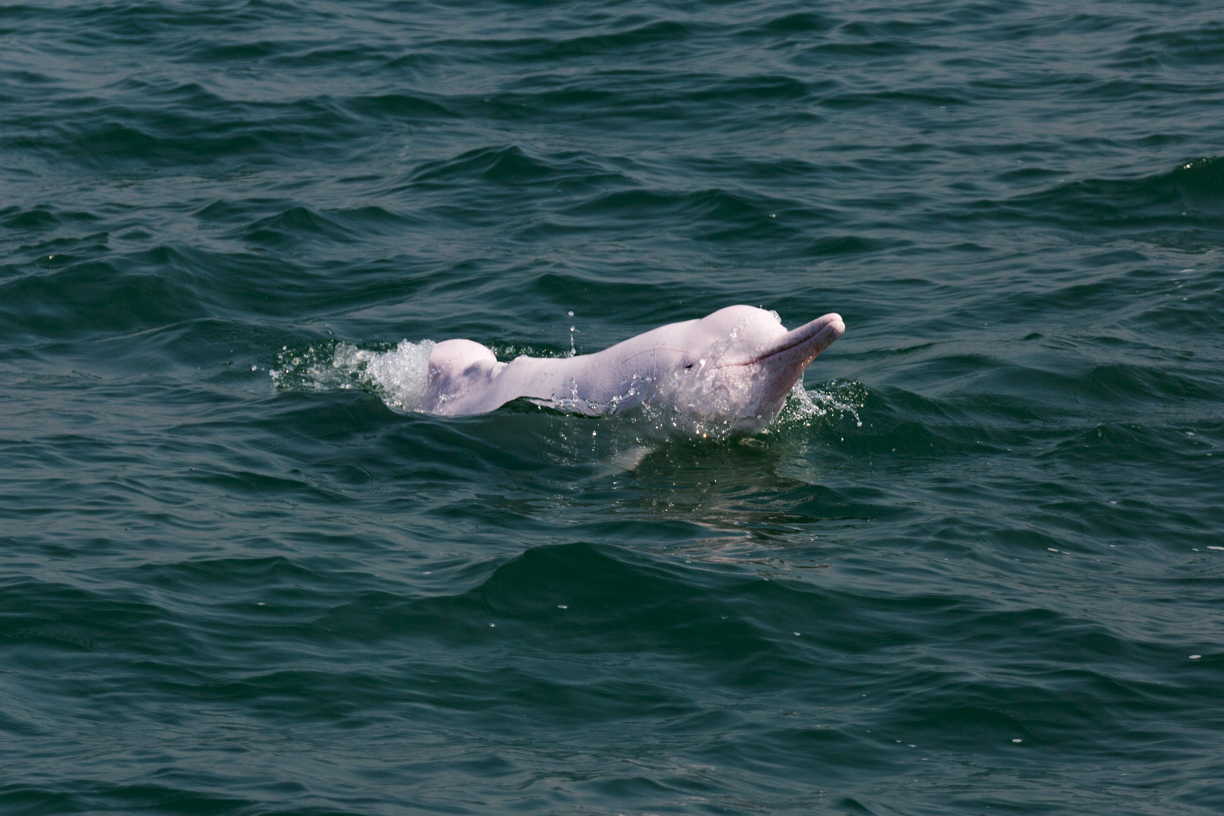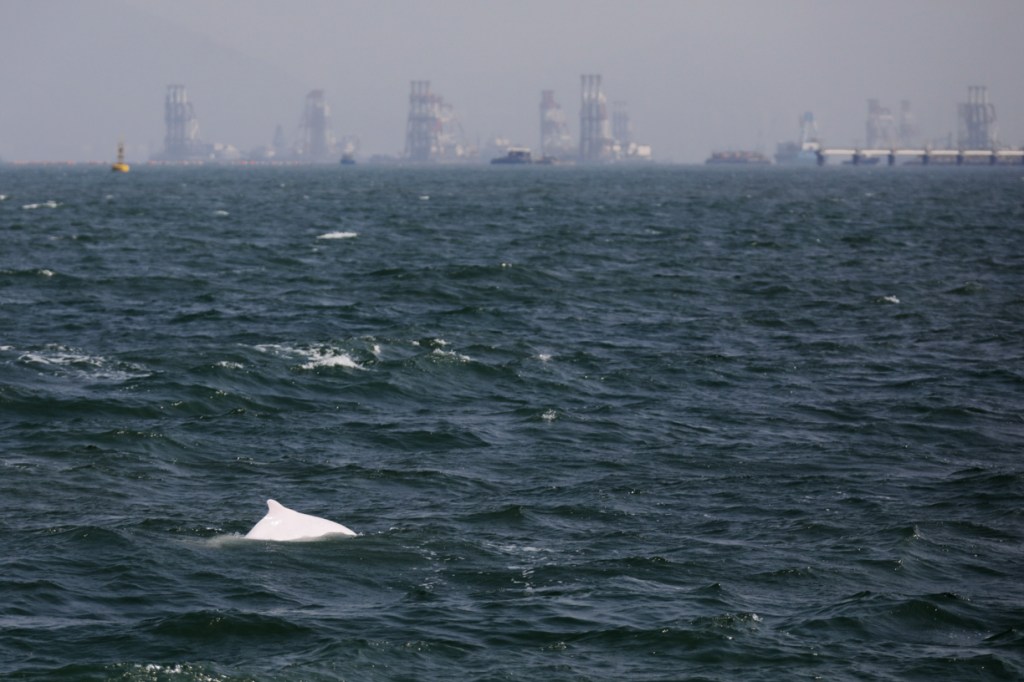 採訪當日港珠澳大橋行車不多,大橋冷冷地在煙霞中聳立。Daphne指着說,拍攝畢業作品那年,正是港珠澳大橋剛動工,大嶼山東北面、大小磨刀那邊完全沒有海豚,很難拍攝,海豚亦沒有社交行為,都是「忙着搵食」,「或者見到有船就急急游走。」但3年後的今天,情況更為惡化,沙洲及龍鼓洲雖是海岸公園,但亦是走私黑點,她一兩個月內僅看到一兩次海豚蹤影,可幸的是因疫情關係,較少遊客,是故高速船也較少。「現在海豚數量仍然不多,但比較定,不會一有船經過就迅速散去,這也證明如果有機會讓海豚平靜生活,牠們有機會Recover。」