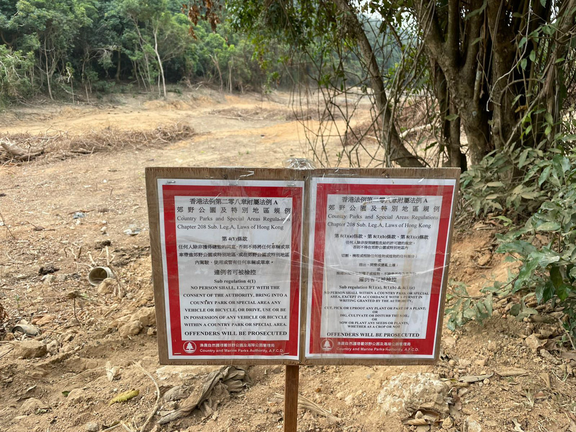 話雖如此,但自2020年被揭發的砍伐林木及平整土地工程,已超越私人土地範圍,並涉及政府土地。據漁護署表示,署方於2020年10月巡查上址時發現有關工程影響到小部份政府土地,署方亦即時採取執法行動,及豎立警告標語。據漁護署今年5月再次回覆本刊,署方已向涉案人士提出檢控。