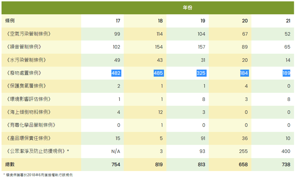 二是環保署《空氣污染及噪音》等相關條例,在上述個案就有附近居民指,每當環保署巡查,工場便會提前降低音量,規避當局監察[3],疑似預知突擊巡查。而該廢料場的分揀廢料工序亦產生了空氣污染問題,但環保署只是發出了「空氣污染消減通知,要求完整遮蓋貯存物料堆」[4]。事後雖然營運者鋪上藍綠色帆布,卻被發現不久已扭成一團,無助消減空氣污染[5]。其實,在某些情況下,環保署可於尚未發出「消減污染通知書』前,就向經營者採取檢控行動[6],例如廠房排噴黑煙、建築地盤排出過量塵埃或營運時產生極大噪音等。另一檢控工具是《廢物處置條例》第23EA條,理論上,只要環保署長有合理理由相信某廢物「相當可能產生有不良環境影響的迫切風險」,是有權移除。但據知至今仍未以此例檢控垃圾山在地的營運者,環保署至今的罰款,只有上述檢控3間進口商的45,500元罰款。