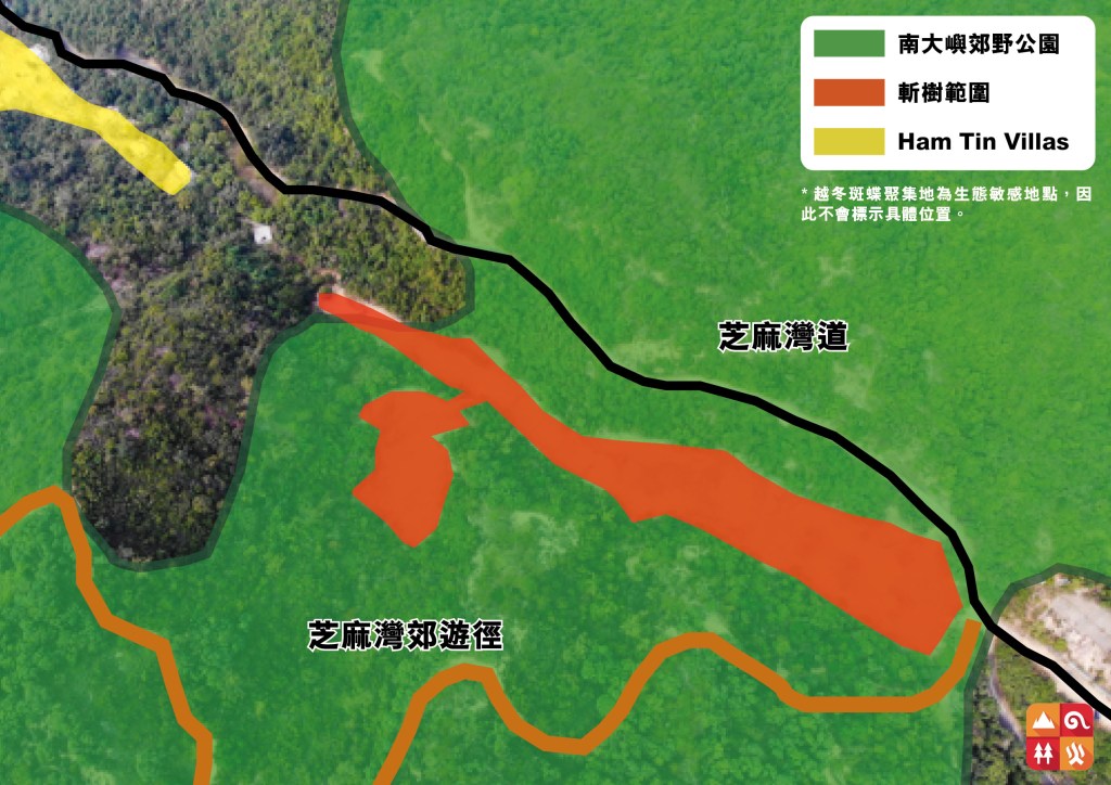 時至2022年3月,有關注蝴蝶保育人士向本刊報料,指出芝麻灣斬樹事件鄰近越冬斑蝶位置,加上旁邊有屋苑發展項目,擔憂蝴蝶棲息地受到破壞。所謂越冬斑蝶是指有季節性遷移習性的斑蝶,可能會長途飛行到較為溫暖的地方渡過寒冬。這些斑蝶會聚集在山谷或樹林,這種群集行為有助牠們抵禦寒風,保持體溫。