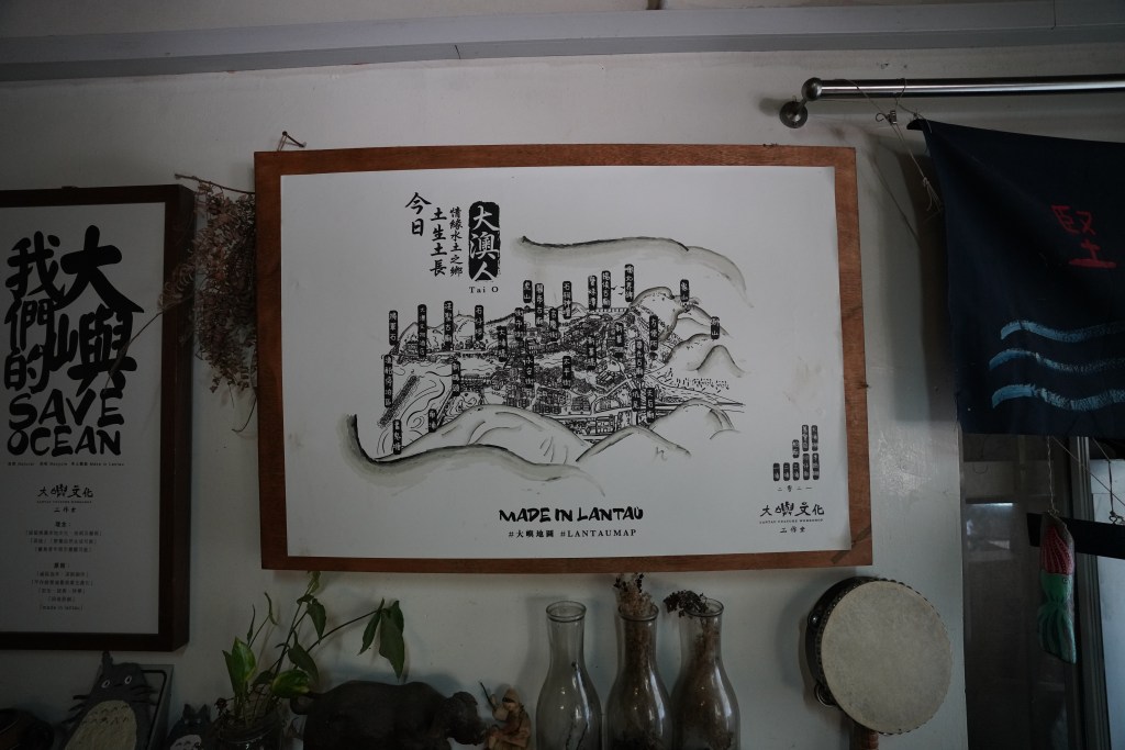 進入大澳,我穿過那道粉紅色堤壩,沿着海往村裏走去,彷如到了世外之地。行山客都慢慢消失不見,只有偶爾幾位村民推着單車,或手執買餸袋路過身旁。走上一條短短的斜路,終於來到這天的目的地——大嶼文化工作室。這裏既是三秒和小燕的家,也是他們的辦公室——是一個社區會堂,也是一個舉辦工作坊,和招待朋友的地方。住在這裏的人,都能叫得出街坊的名字,出外購物也會先問問鄰居有無需要,就連養在平台的貓,也是幾戶人輪着餵食。到了晚上,開一張枱在門前,邊聊天邊吃飯。雖然生活在偏遠地區,心態卻一點也不孤癖。相反,我們雖然住在城市中心,人的心卻距離很遠。