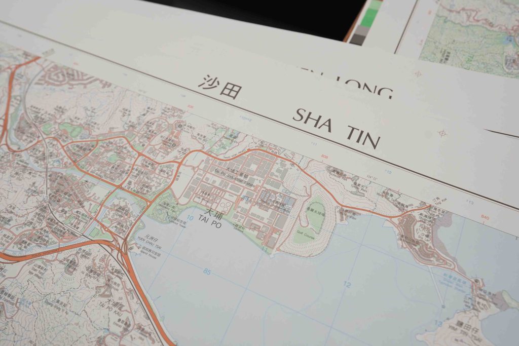在印製地圖的最後階段,還要經過一連串加工、封面設計、主題設計及排版等工序,測繪人員還要到印刷廠房調較色彩,以確保產品質素,印刷地圖可謂一絲不苟。以郊區地圖為例,為了凸顯山的立體感,除了四色印刷外,還用了第五隻灰藍色的專色來表達山形。而HM20C地形圖,則用了5種專色印刷。製圖師張偉明解釋,由於等高線非常幼細,若用四色印刷就會印得不清楚,線甚至可能會斷開。他還拿出一張珍藏的手繪香港島的山影圖,他指繪畫山影是專門學問,從前要特地派員到外國學習,以素描的方法來手繪山影。