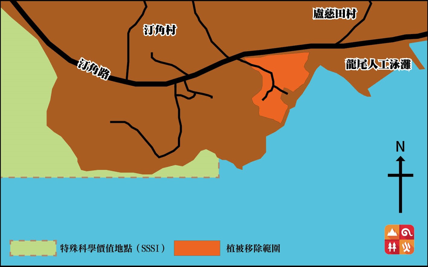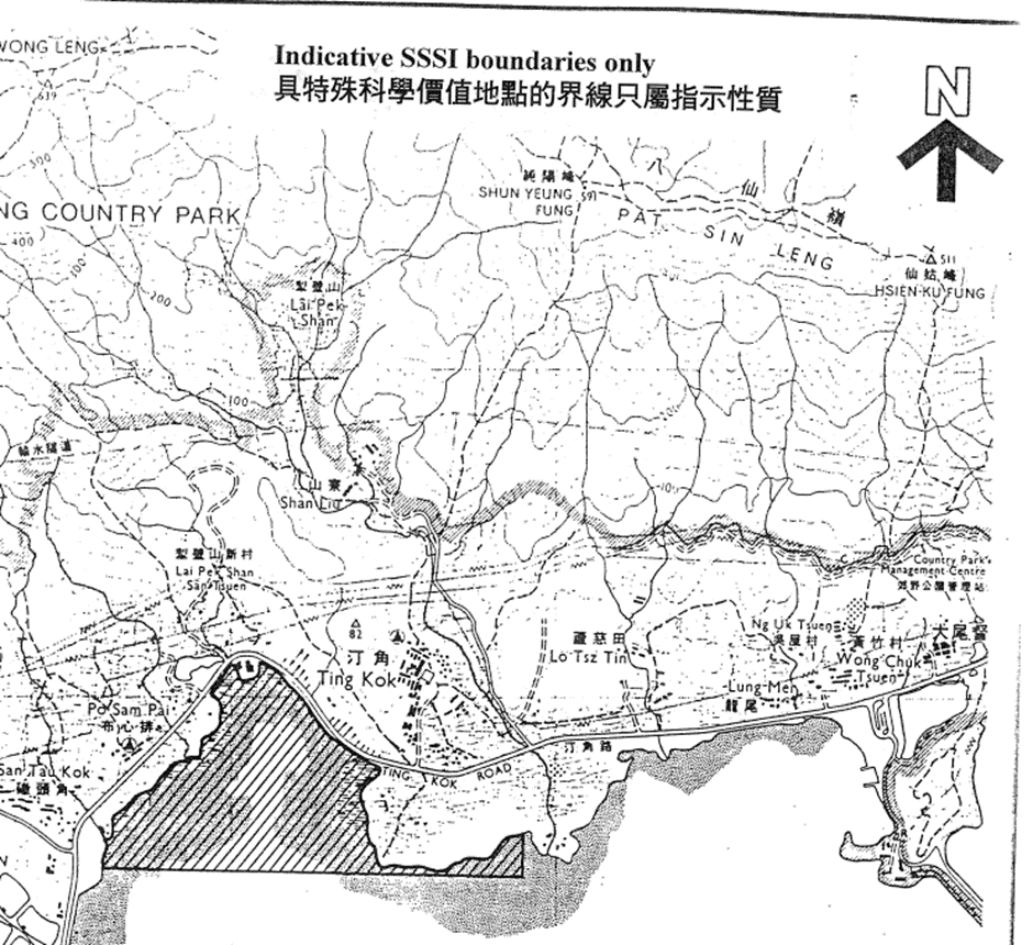 稱這裏為黑點,是因為早於2014年至2015年,這裏曾經歷大規模倒泥,當時大量樹木被斬去,建築廢料鋪滿遍地。值得留意的是,距離涉事地點約200米外,已是汀角具特殊科學價值地點(SSSI)的範圍。當年我們早已去信各相關部門,關注工程對毗鄰生態環境的影響。