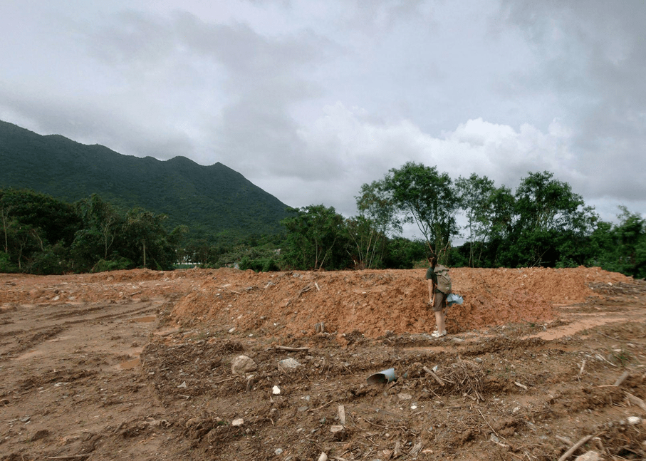 近年來我們一直密切留意鄉郊各大大小小的「好去處」,甚麼營地、露營車、農莊、燒烤場……只要夠新,幾乎就有潛力成為環境破壞黑點。今次來到的黑點,是汀角東海岸,龍尾人工泳灘以西的一幅地。筆者站在汀角路旁,直望已見海邊,因為平整範圍大得誇張,幾乎等同兩個龍尾灘。現場大量植被已被移走,並停放了至少四部工程車;由於地勢有高低差異,導致多處有積水;保守估計翻起後堆高的泥土高達1.2米,部份土地亦已鋪上人工草皮。