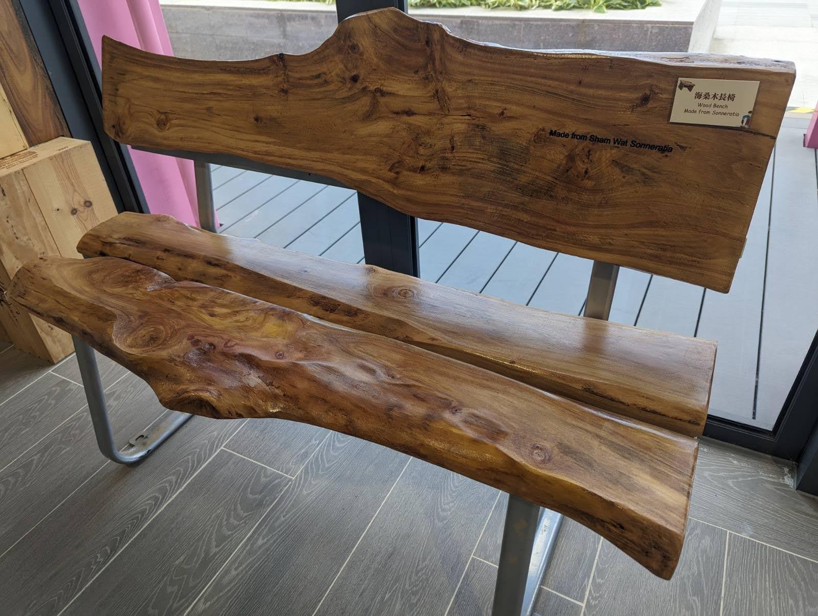 展覽貫徹長春社實踐環保的原則,展覽中的展板都是重用舊展覽展板製作而成,更展出了利用海桑升級改造(Upcycling)製作的木長椅和鳥屋。原來海桑雖然也是紅樹林的一種,卻是從海的另一端飄來,由於其生長速度快,入侵本地紅樹林後能快速成林,遮蔽陽光,令本地紅樹失去足夠陽光生長,更會霸佔泥灘空間,縮窄涉禽(即在泥灘的淺水區覓食的鳥類)的覓食範圍和泥灘生物的生存空間,是破壞本地紅樹林生態平衡的一大威脅。