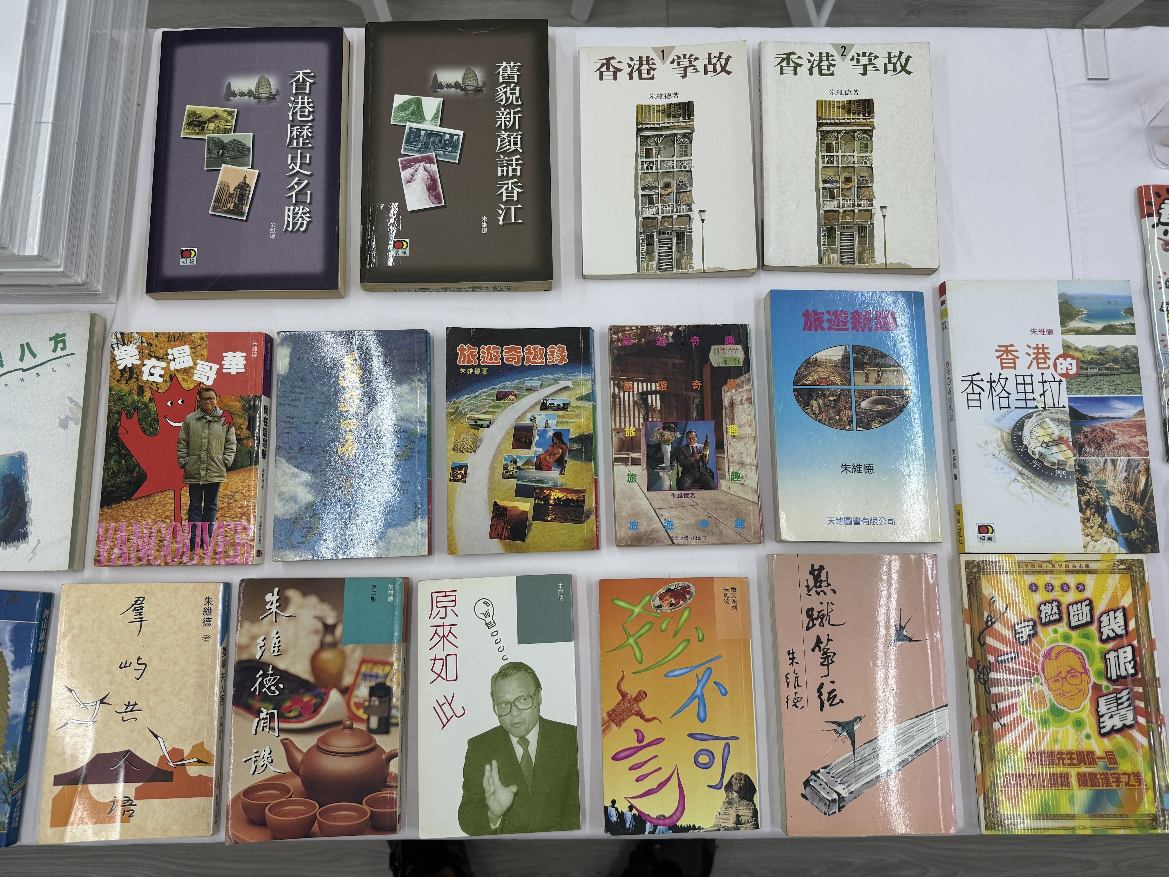 展覽中展出不少朱翁著作,包括《香港掌故》系列、旅遊書以及散文集,還有朱翁收藏的舊相片,及有朱翁筆記的舊軍用地圖。James表示,朱翁是一位為人熟悉的電視台主持人,也是著名的旅遊及掌故書作者,但原來朱翁也是出色的散文作家及風景攝影師,出版過多本散文集,詞鋒銳利辛辣,而攝影作品則見於最近期出版的《朱翁同遊香港原貌》,書中收錄不少他所拍的大嶼山全景舊相片,令人目不暇給。