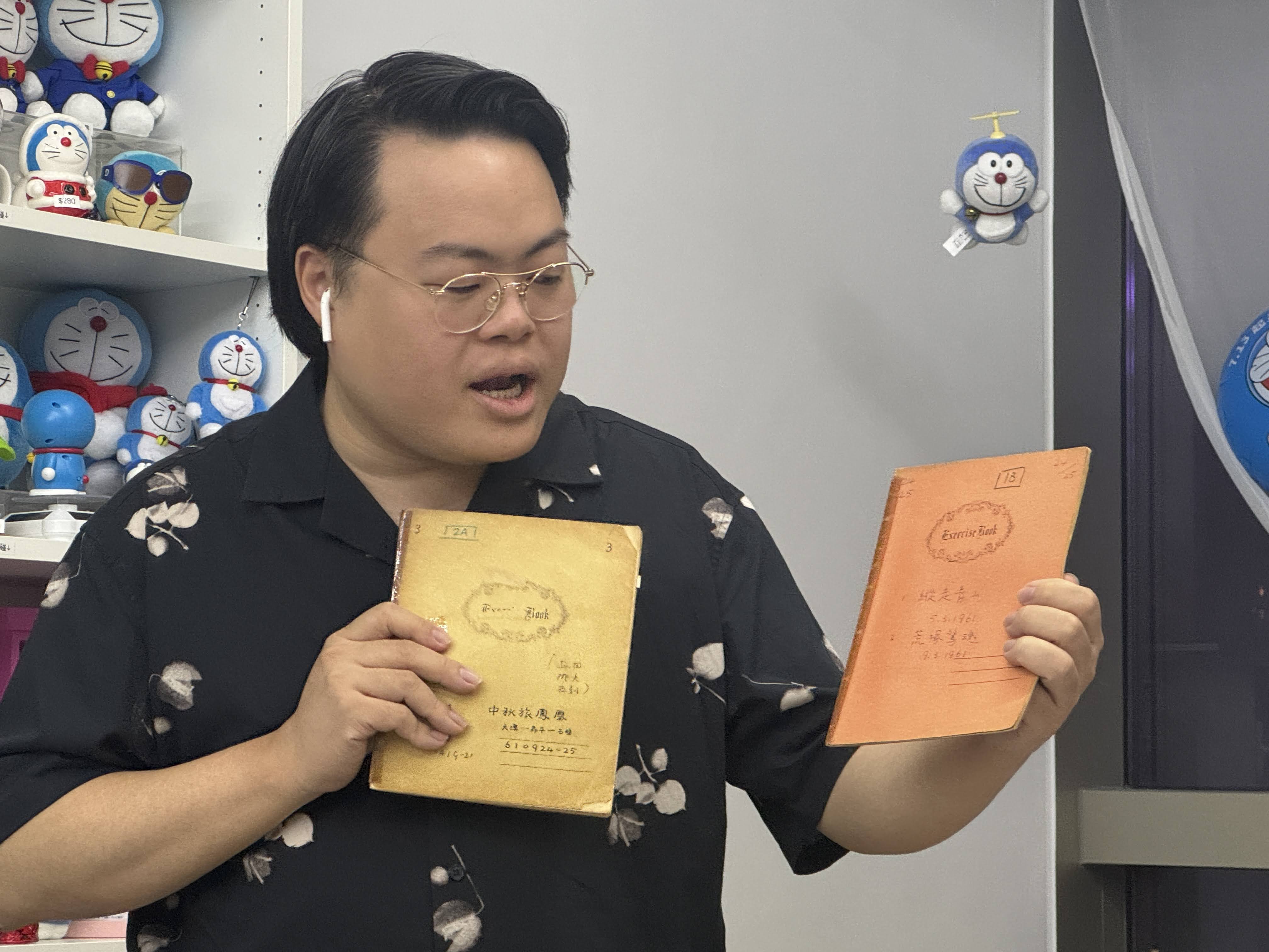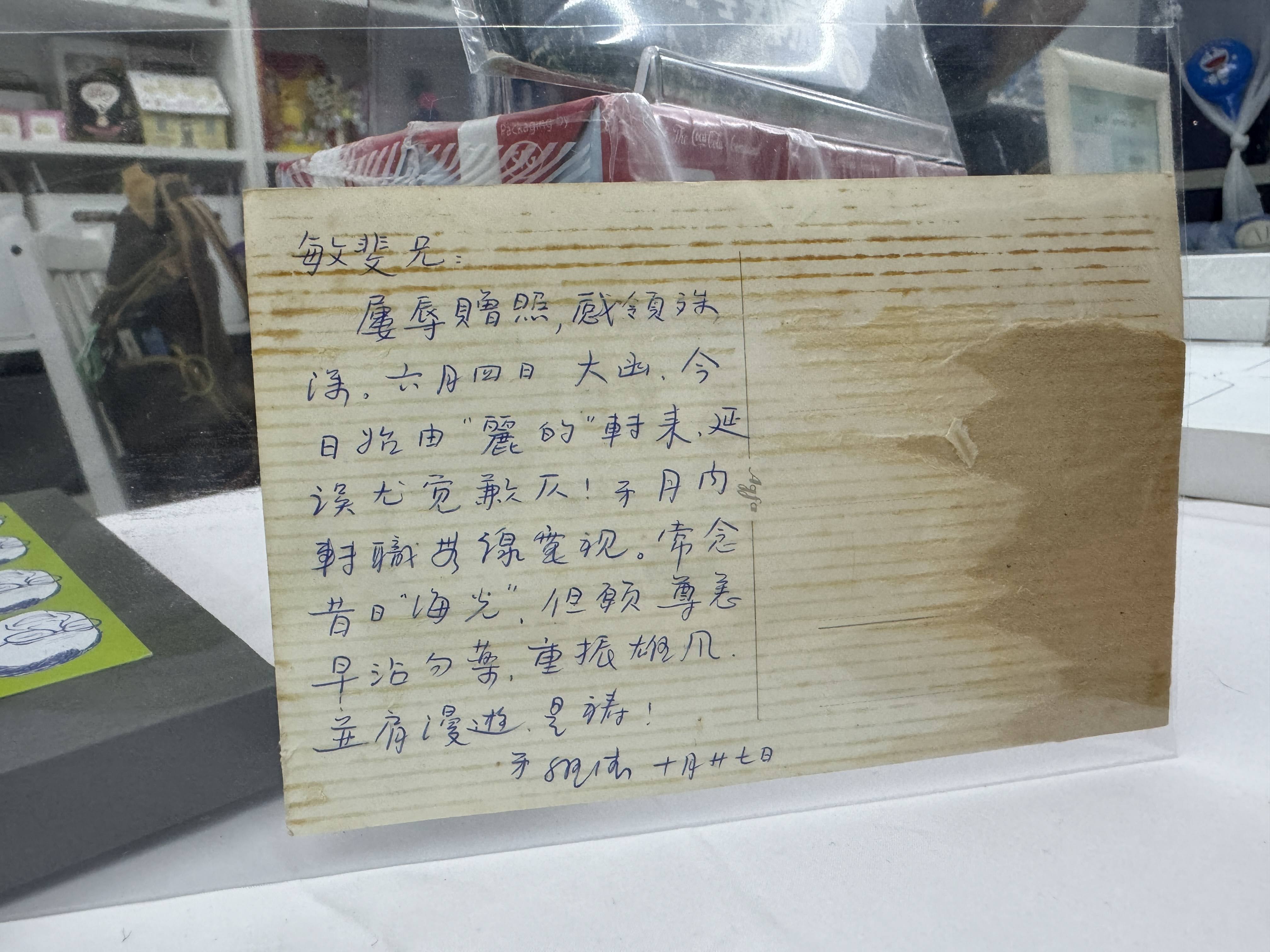 Michael還在展覽講座分享更多珍貴藏品,包括兩本朱翁的行山筆記本,筆記本中不但有詳細筆記,還有景物相片及備註,是非常珍貴的香港史地研究資料。此外,他還展示了一張珍貴的明信片。Michael說,明信片後面的字原先是被遮蓋,他最初不知道相片背後有字,後來才發現原來是朱翁寫給著名地圖繪製家黎敏斐的明信片,不知為什麼沒有寄出。當時正值黎敏斐身體抱恙,而朱翁則由麗的轉職到無線電視。