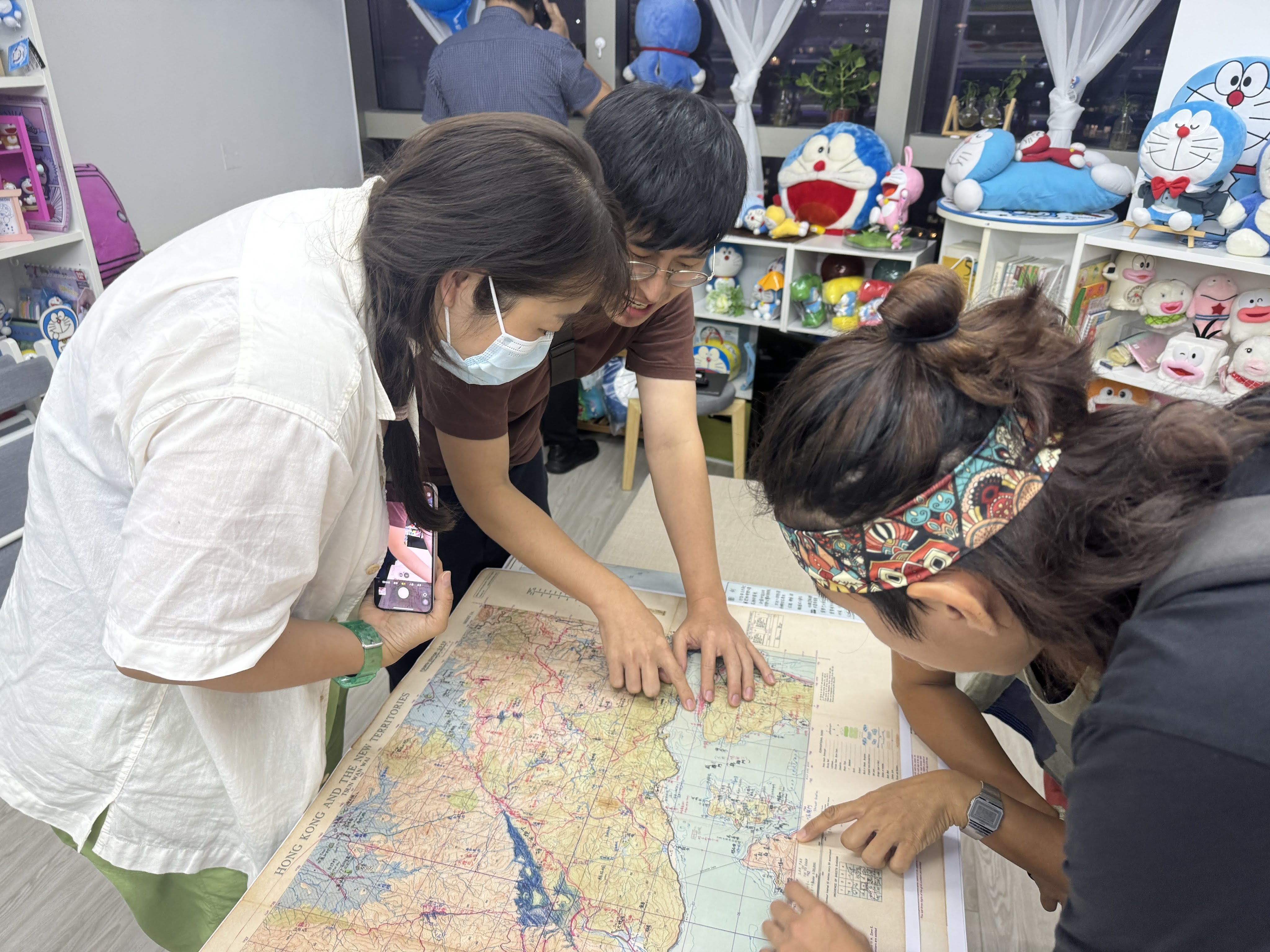 佛教歷史研究者鄺志康(Michael)於2021年因為工作關係認識了朱翁,及後因為朱翁年邁,他開始幫忙整理朱翁的收藏品,其中主要是朱翁多年來攝影的相片菲林。「朱翁keep嘅菲林數量,唔可以以張計,係要以公斤嚟計。」Michael表示,朱翁的藏品約有50公斤,其中大部份是菲林。除了菲林之外,朱翁最重要的藏品就是24張軍用地圖。原來當年朱翁初初行山,就到夜冷店買了全套24張英軍軍用地圖,一邊行山一邊在地圖上寫筆記,這套地圖雖然陳舊,但依然保存。因為地圖太舊,為免在展出期間受到破壞,所有他們決定將其中大嶼山的地圖重新放大列印,讓參觀者細閱。