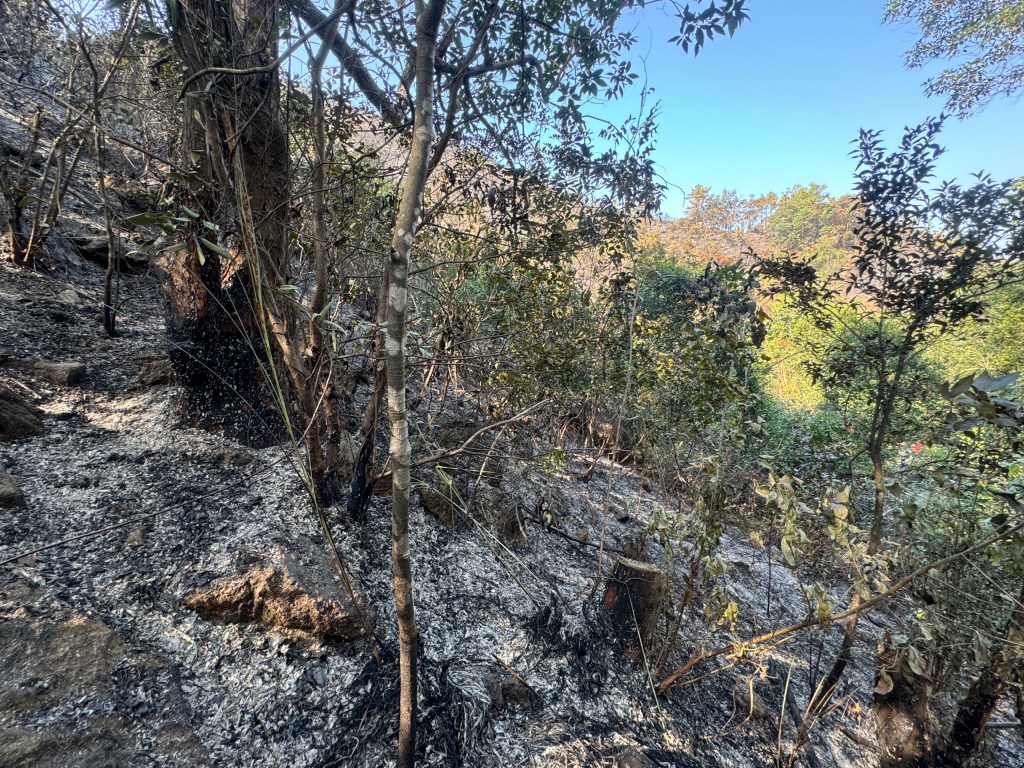 據媒體報道,元朗大棠於28日發生山火,兩條火龍分別達50米及200米,一度迫近民居。消防員及政府飛行服務隊花超過25小時灌救,至昨日(29日)下午4時許終救熄山火。本刊記者於今日(30日)中午時份到上述位置考察山火後狀況,麥理浩徑第十段部分路徑旁有不少樹幹被燒焦,地上滿佈灰燼。